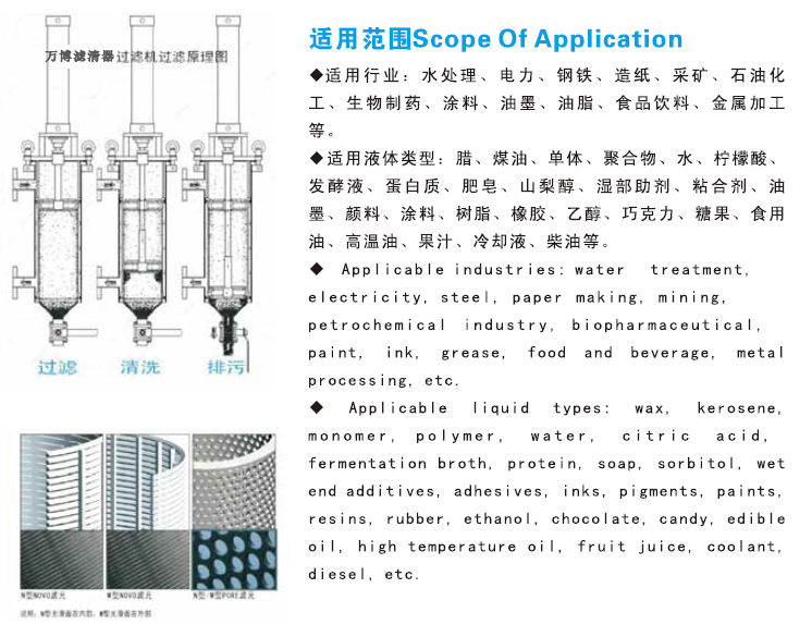 GDF Scraper filter is suitable for all kinds of viscous liquids, especially for24-hour continuous operation of non-stop system. It can filter out all kinds ofmechanical impurities in water to ensure the safe and reliable operation of theFully automatic intelligent processfilter,full computer automaticsystem.operation, very convenient, intelligent sewage discharge function is more humane.according to the user's material viscosity and impurity content of action, moreconvenient, reliable and efficient.