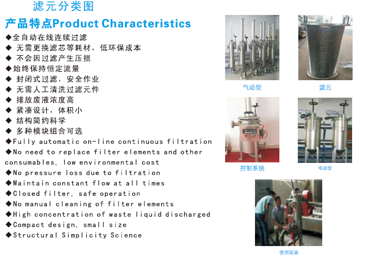 GDF型刮刀式过滤器适用于各种带有黏度的液体,特别是24小时连续运行的不停机系统,可以滤出水中的各种机械杂质,确保系统安全可靠的运行。全自动智能工艺过滤器,全电脑自动运行,非常方便,智能排污功能更人性化,可根据用户物料黏度及杂质含量情况进行动作,更方便、可靠、高效。